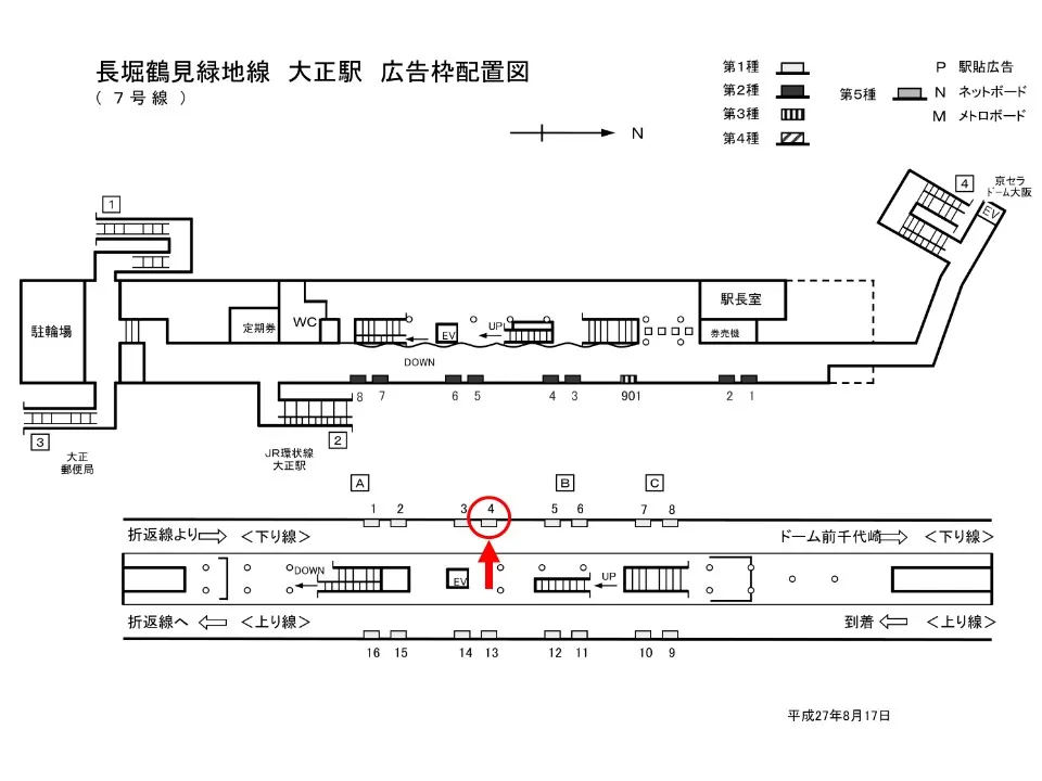 【看板】Osaka Metro大正駅 ホーム No.1-15