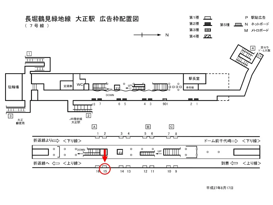 【看板】Osaka Metro大正駅 ホーム No.1-15