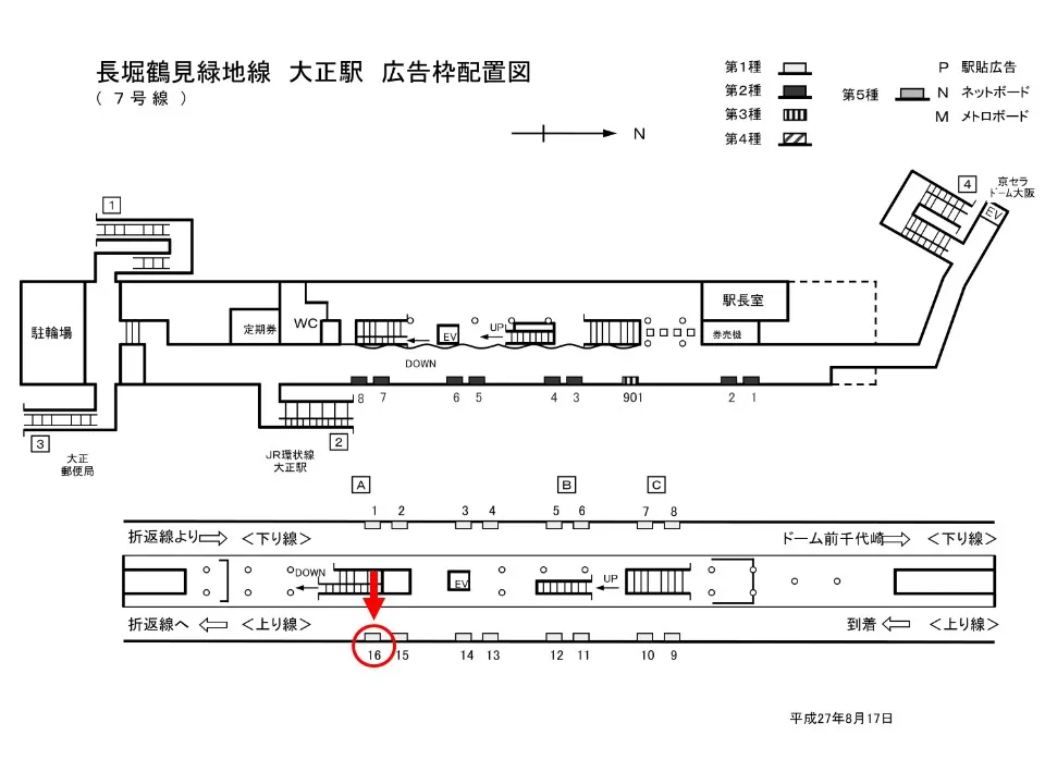 【看板】Osaka Metro大正駅 ホーム No.1-16