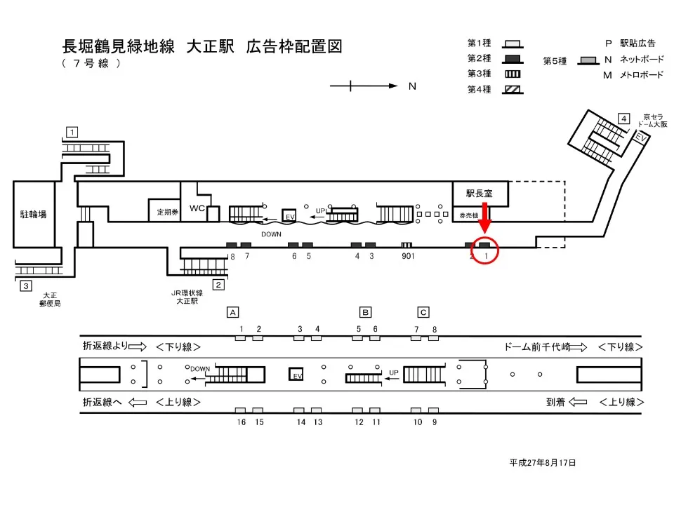 【看板】Osaka Metro大正駅 ホーム No.1-16