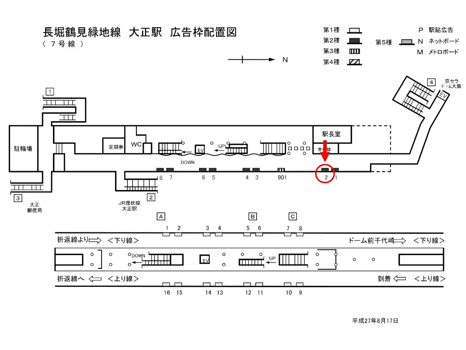 【看板】Osaka Metro大正駅 ホーム No.1-15