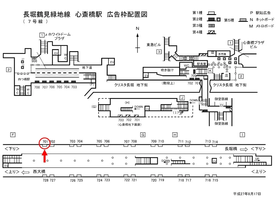 【看板】Osaka Metro心斎橋駅 ホーム No.1-701