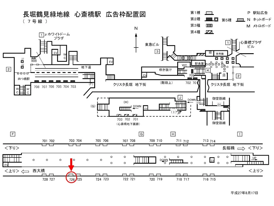 【看板】Osaka Metro心斎橋駅 ホーム No.1-701