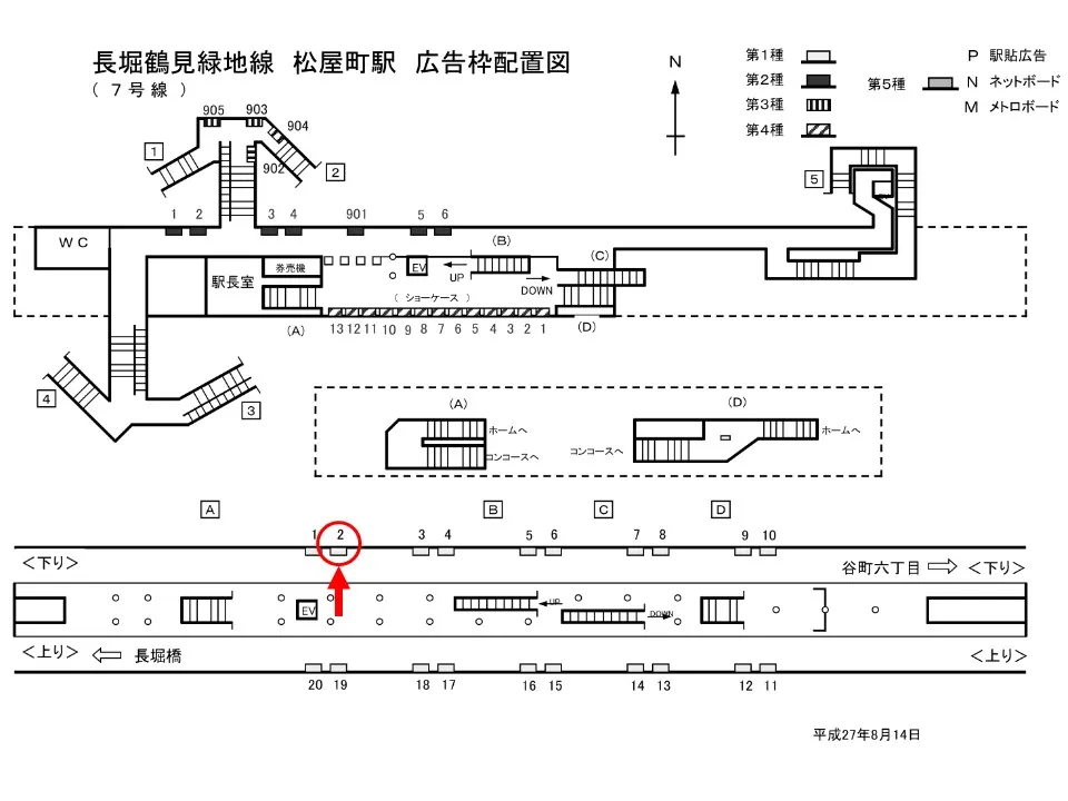 【看板】Osaka Metro松屋町駅 ホーム No.1-8