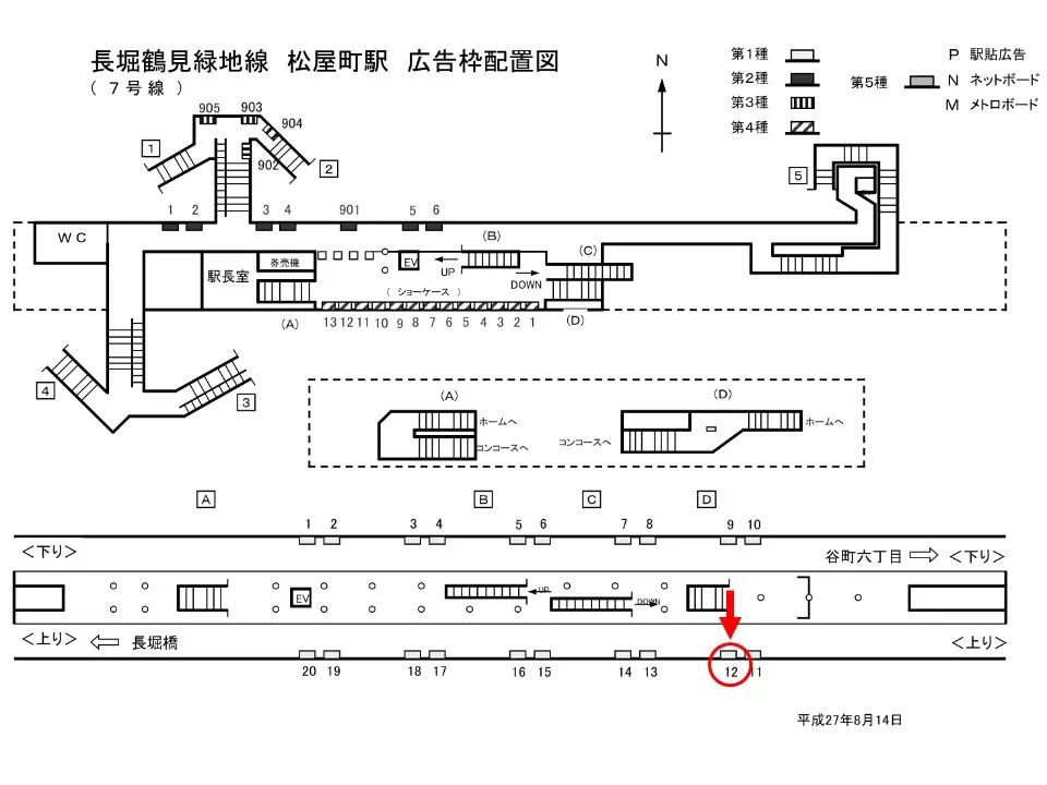【看板】Osaka Metro松屋町駅 ホーム No.1-12