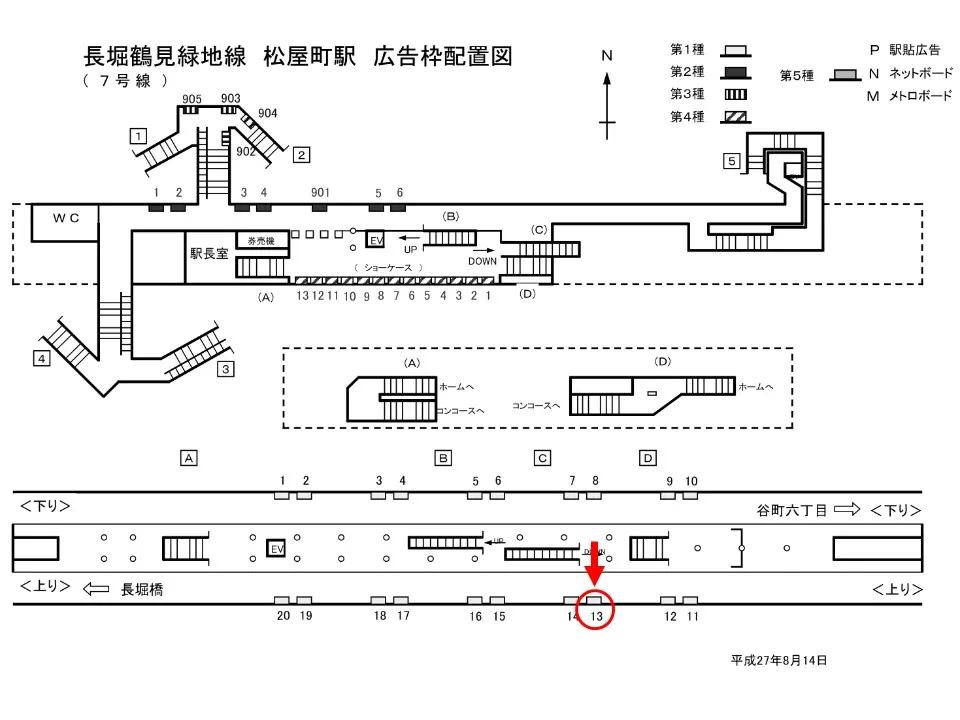 【看板】Osaka Metro松屋町駅 ホーム No.1-5