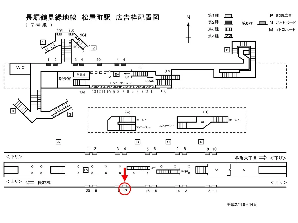 【看板】Osaka Metro松屋町駅 ホーム No.1-17