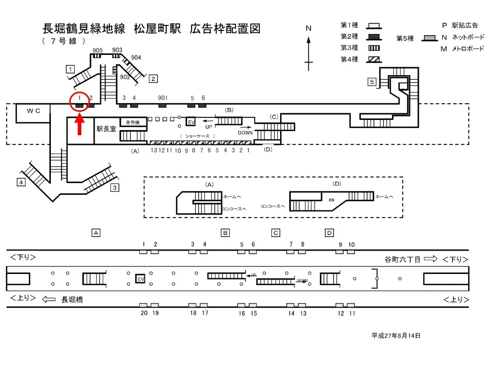 【看板】Osaka Metro松屋町駅 ホーム No.1-8