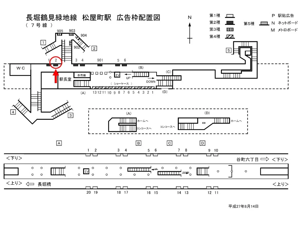 【看板】Osaka Metro松屋町駅 ホーム No.1-5