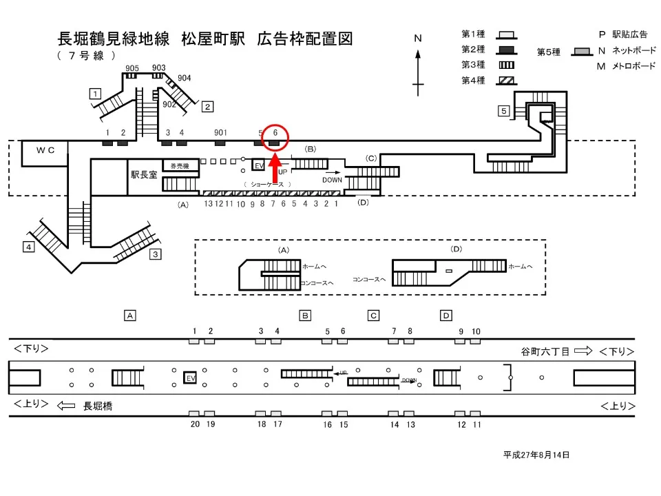 【看板】Osaka Metro松屋町駅 ホーム No.1-5