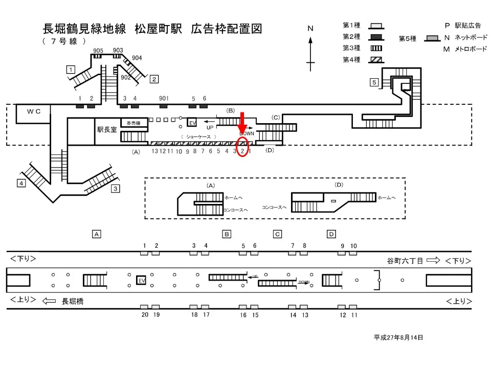 【看板】Osaka Metro松屋町駅 ホーム No.1-7