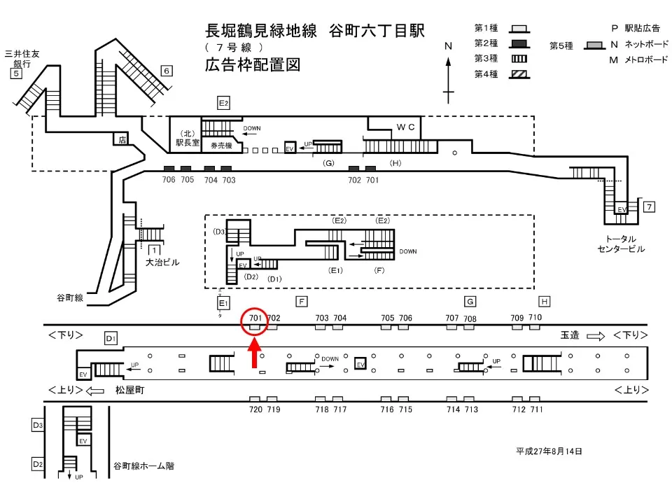 【看板】Osaka Metro谷町六丁目駅 ホーム No.1-701