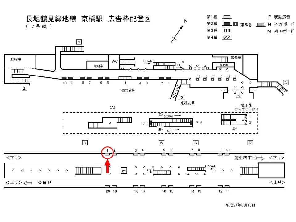 【看板】Osaka Metro京橋駅 ホーム No.1-1