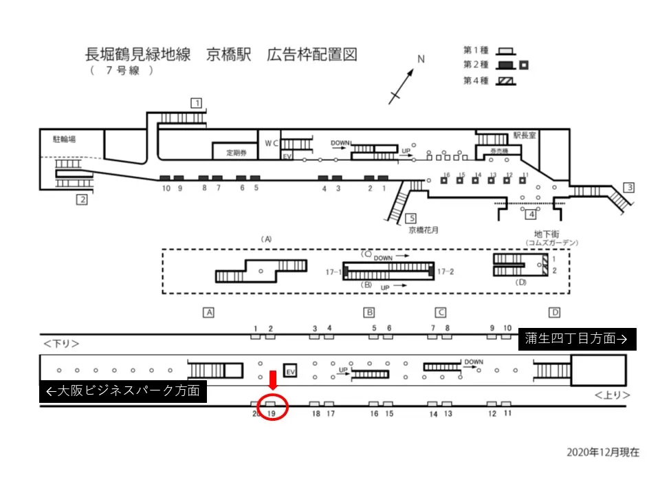 【看板】Osaka Metro京橋駅 ホーム No.1-19