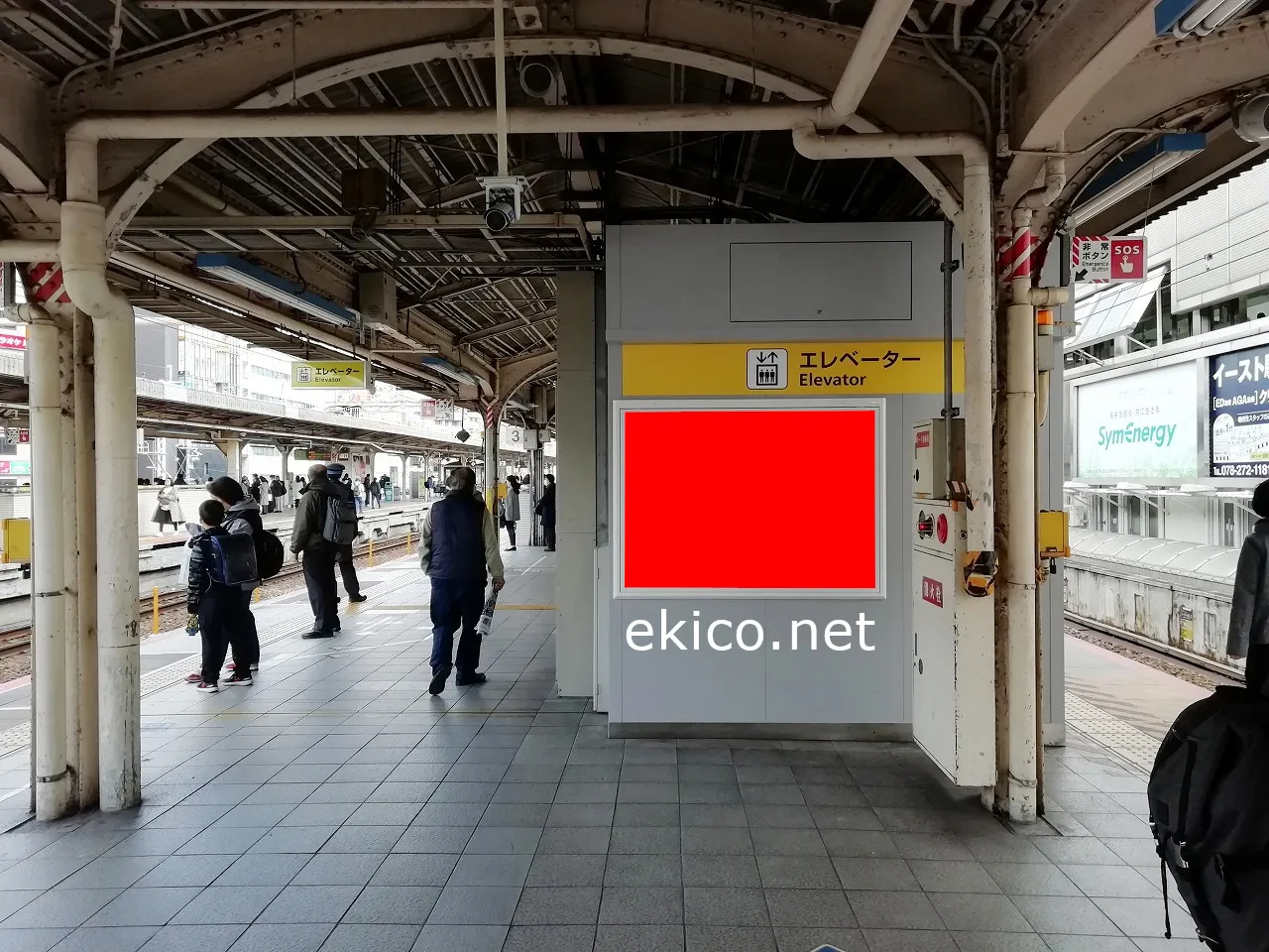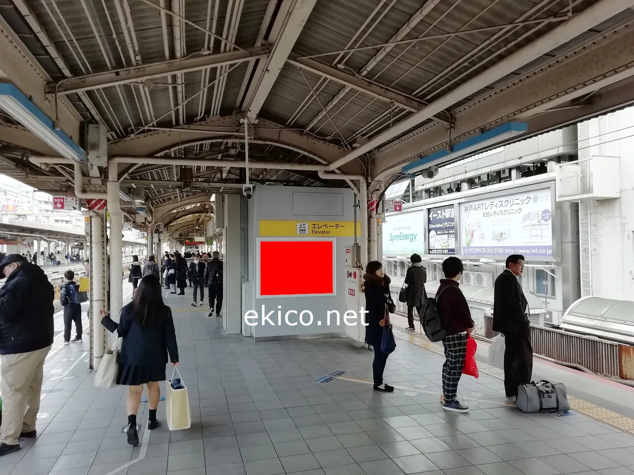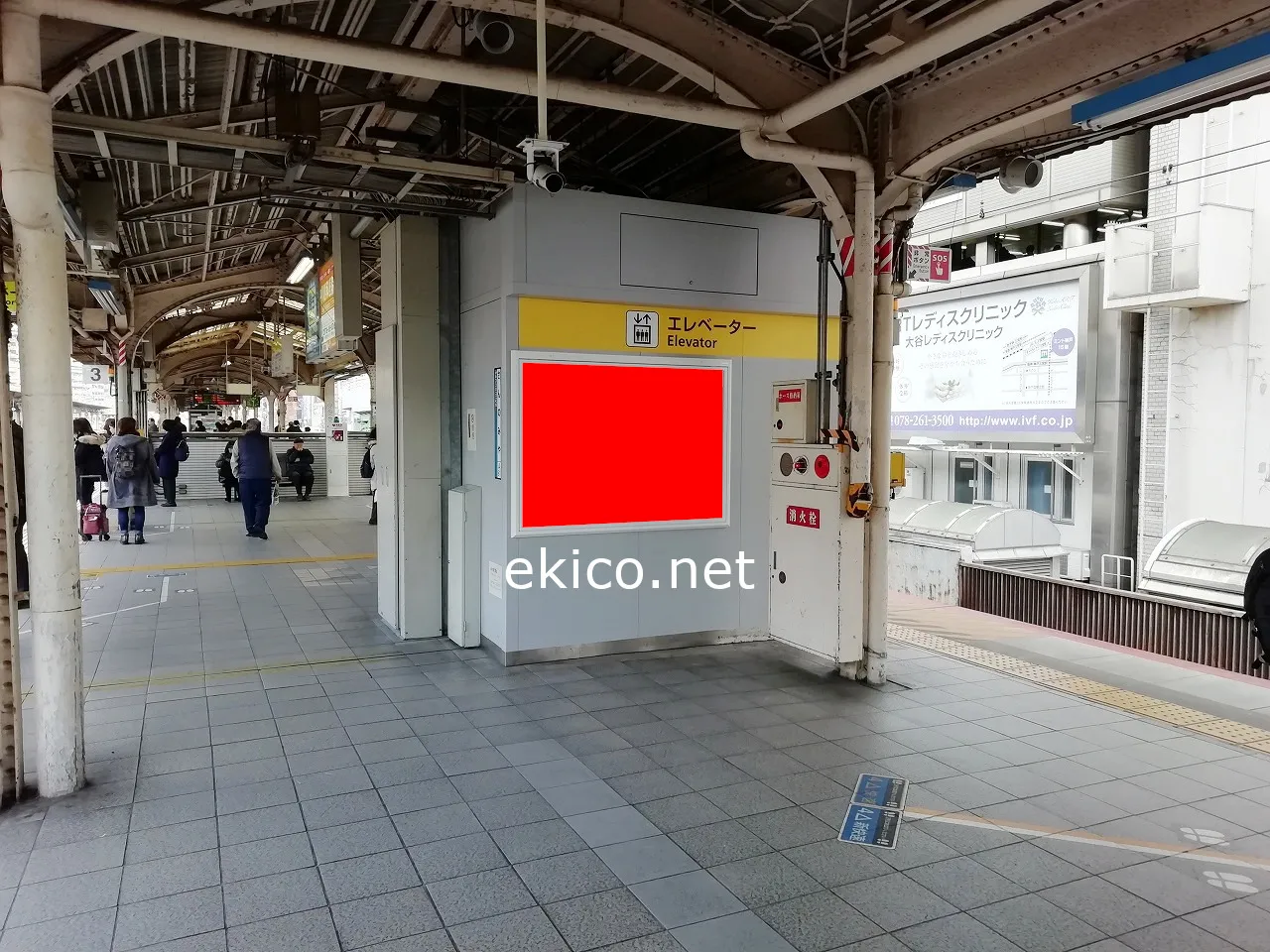 ホーム上のエレベータ壁面にあるため、JR三ノ宮駅から明石・姫路方面へ向かう乗車客や大阪方面から到着してホーム上を移動する降車客へのPRに適しています。