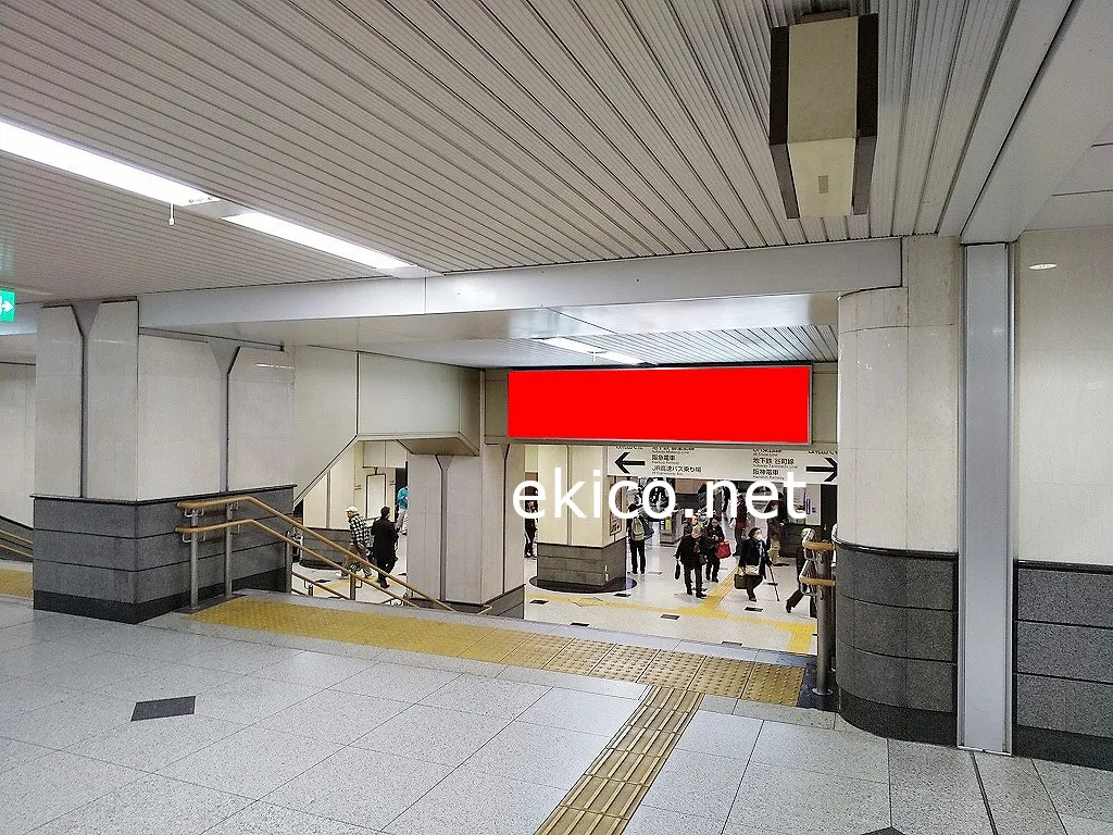中央改札口へ向かう通路上に位置し、同じ通路には他の看板広告が無い為、通行者の目に留まります。