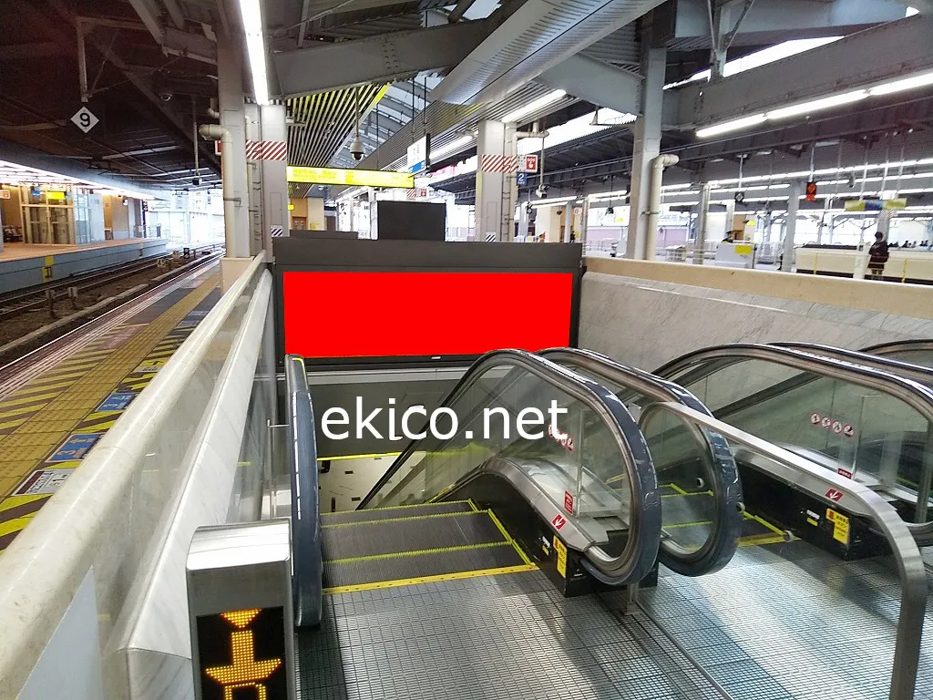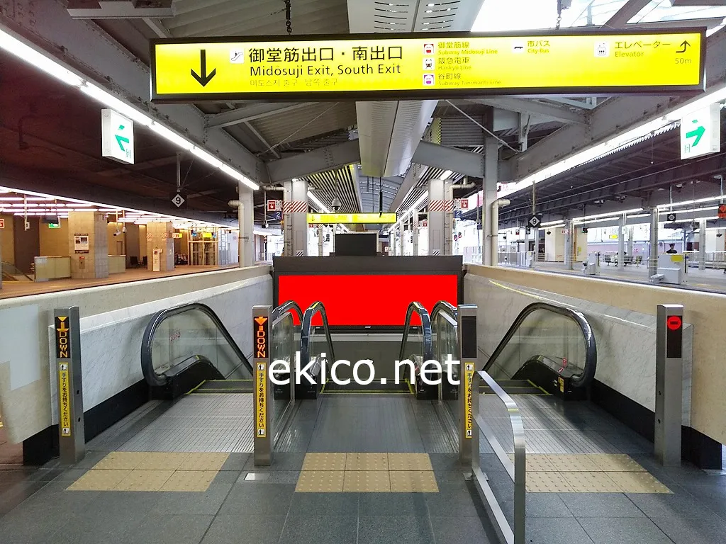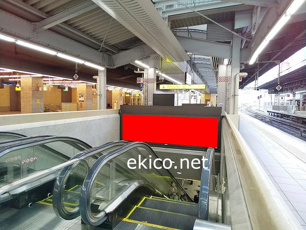 新大阪・京都方面行きホームのエスカレータ正面に位置し、Osaka Metro御堂筋線及び阪急への乗り換え時に利用する東コンコースへつながる為、多くの方に訴求できます。
