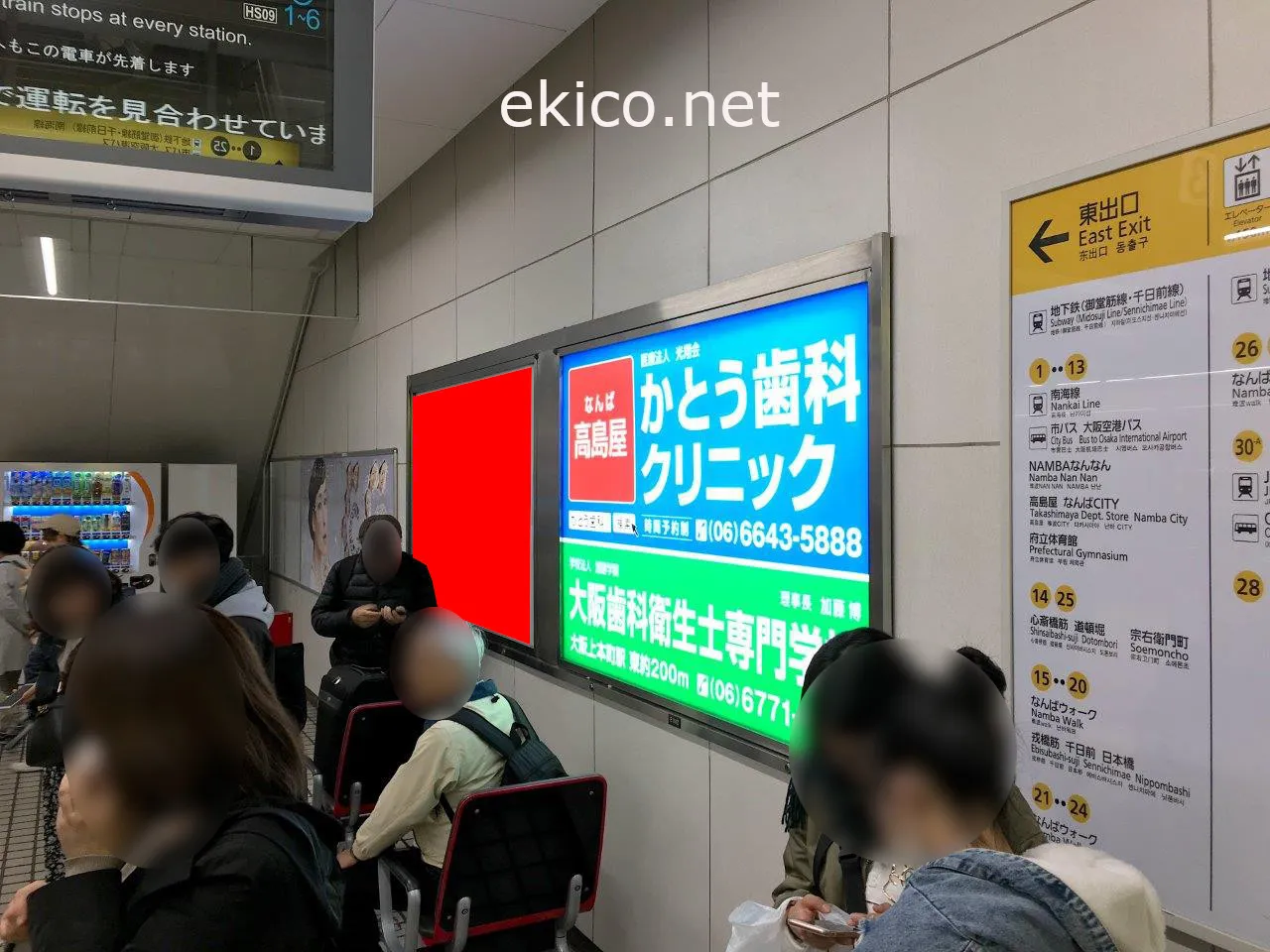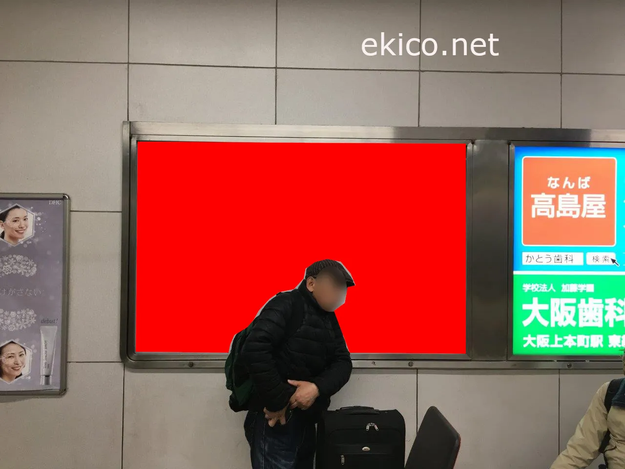 ホーム上に設置されているため、近鉄奈良方面から大阪難波駅を利用する人へ向けたPRに適しています。