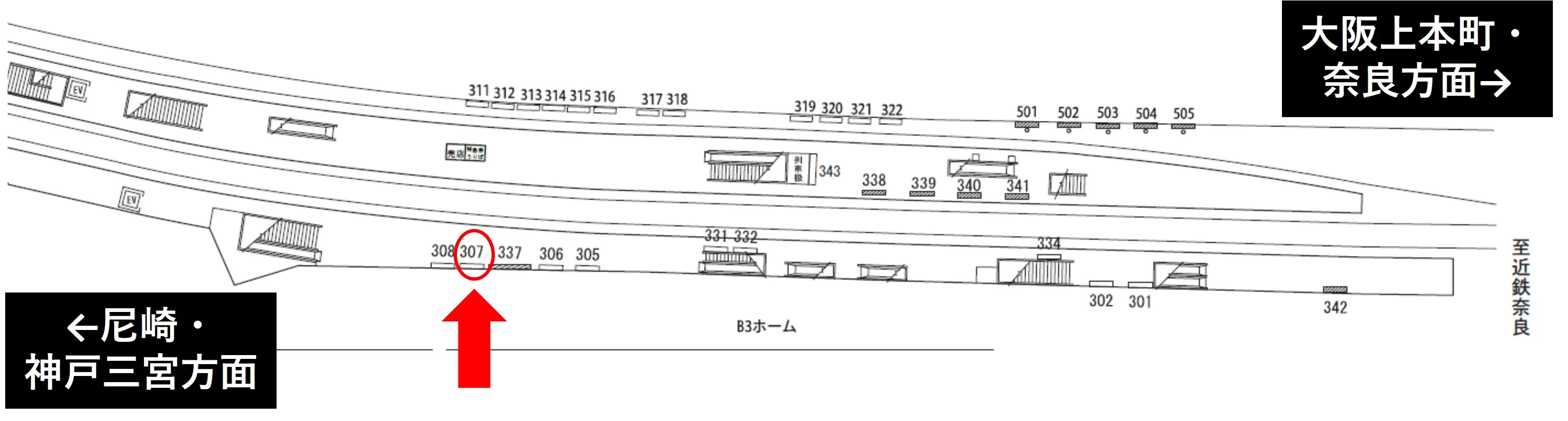 ■近鉄大阪難波駅ホーム№307の魅力・特徴