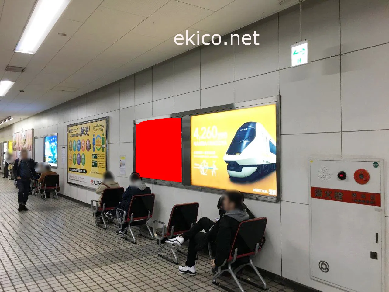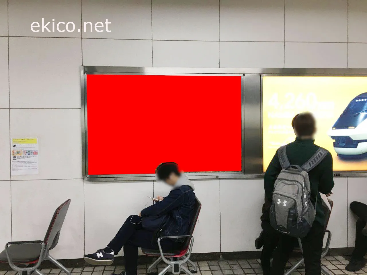 ホーム上に設置されているため、近鉄奈良方面から大阪難波駅を利用する人へ向けたPRに適しています。