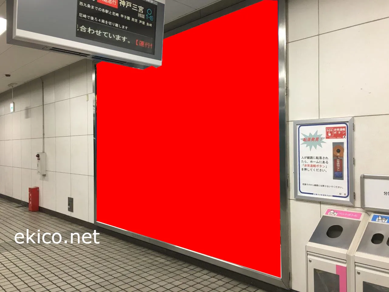ホーム上に設置されているため、近鉄奈良方面から大阪難波駅を利用する人へ向けたPRに適しています。
