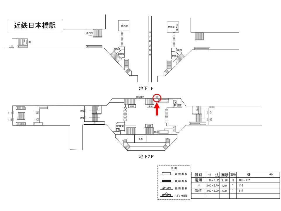 【看板】近鉄近鉄日本橋駅 コンコース No.108