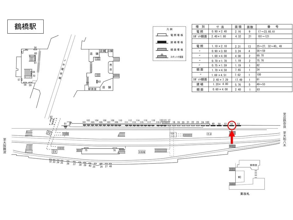 【看板】OsakaMetro 鶴橋駅 ホーム No.1-2
