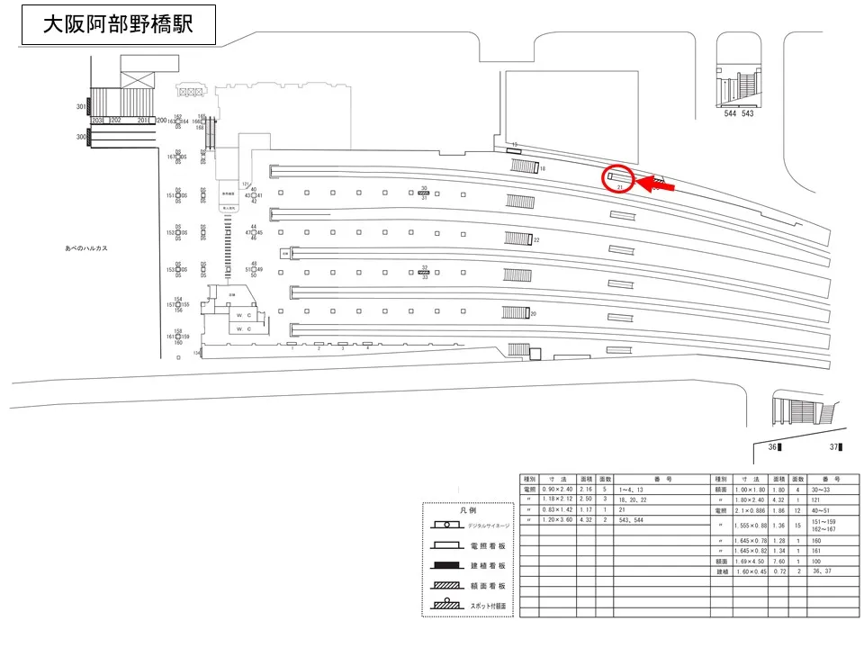 【看板】近鉄大阪阿部野橋駅 ホーム No.4