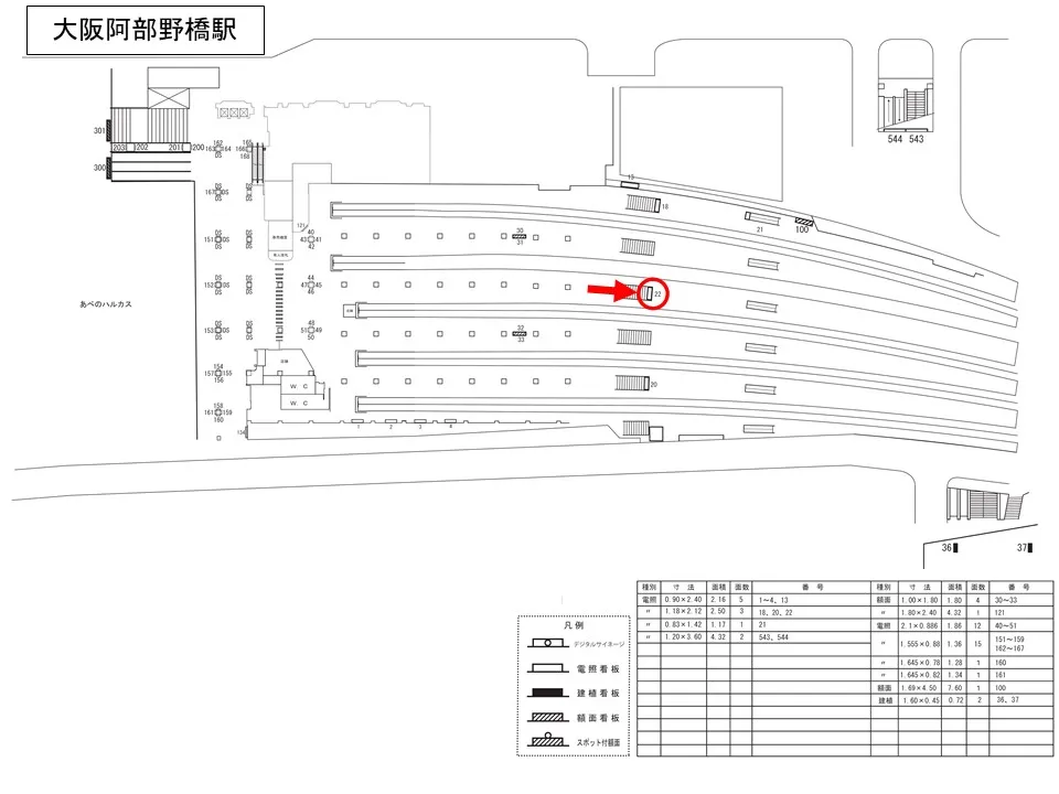 あべのハルカスへ繋がる中改札口や御堂筋線・JR天王寺駅へ繋がる東改札口への利用者に向けて有効な媒体です。