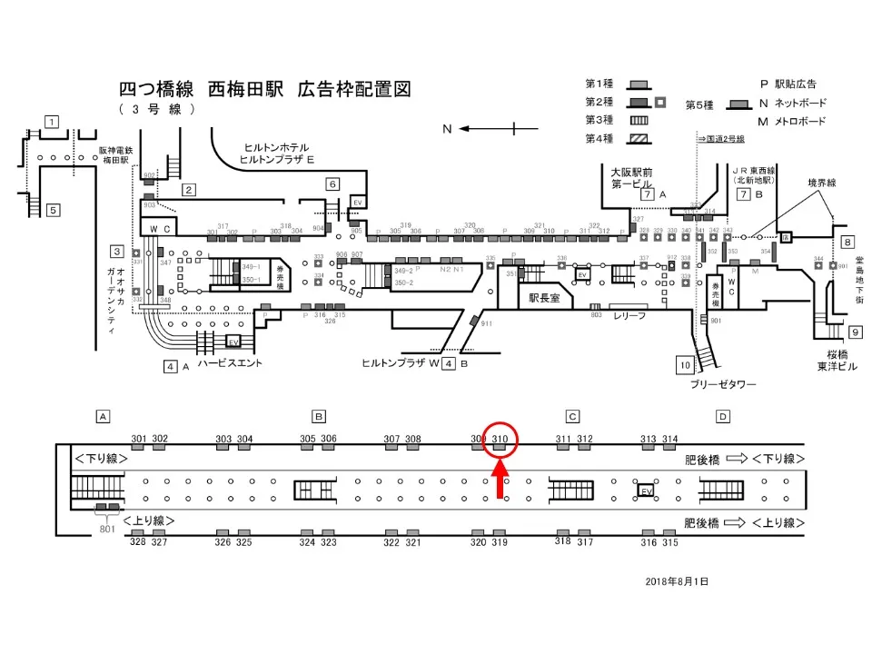 【看板】OsakaMetro 西梅田駅 ホーム No.1-310
