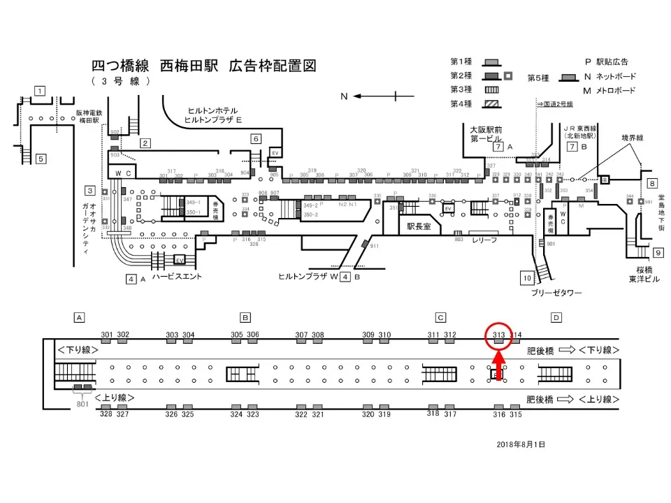 【看板】OsakaMetro 西梅田駅 ホーム No.1-313