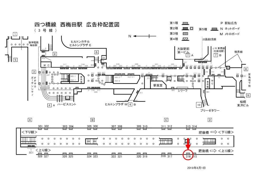 【看板】OsakaMetro 西梅田駅 ホーム No.1-316