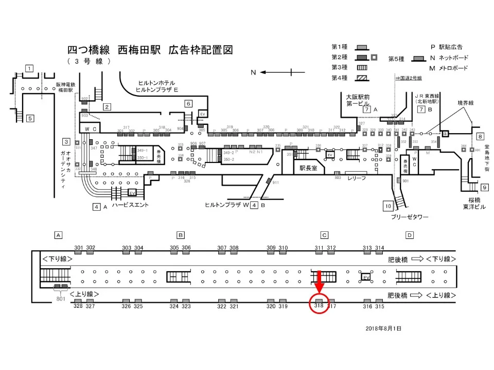 【看板】OsakaMetro 西梅田駅 ホーム No.1-318