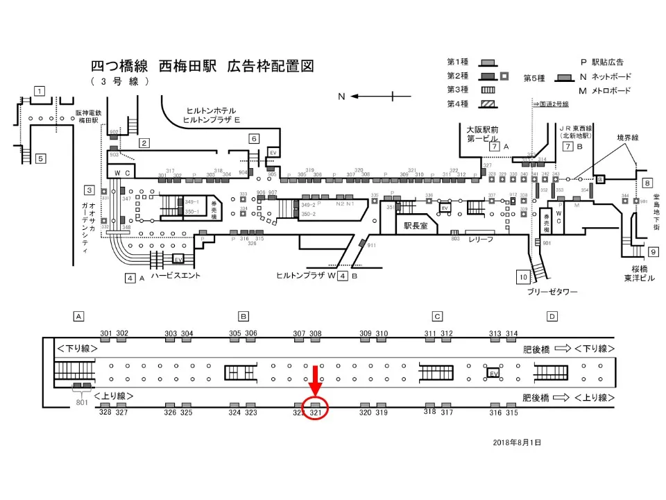 【看板】OsakaMetro 西梅田駅 ホーム No.1-321