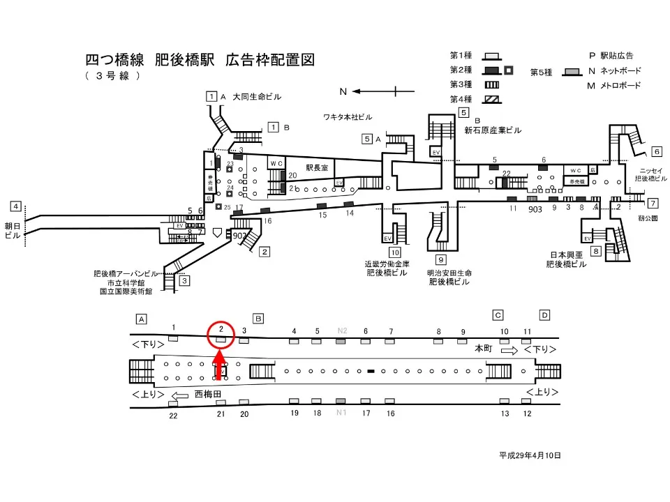 【看板】OsakaMetro 肥後橋駅 ホーム No.1-17