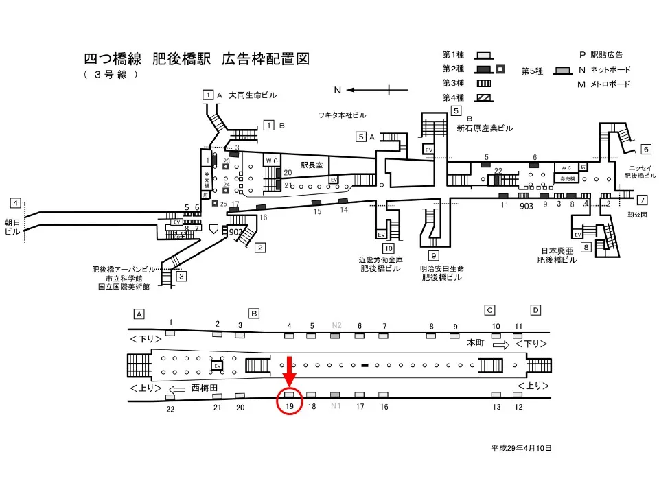 【看板】OsakaMetro 肥後橋駅 ホーム No.1-19
