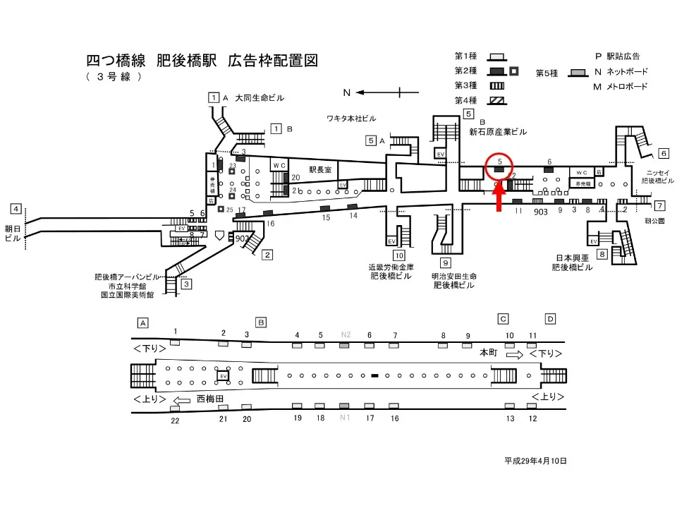 【看板】OsakaMetro 肥後橋駅 ホーム No.1-17