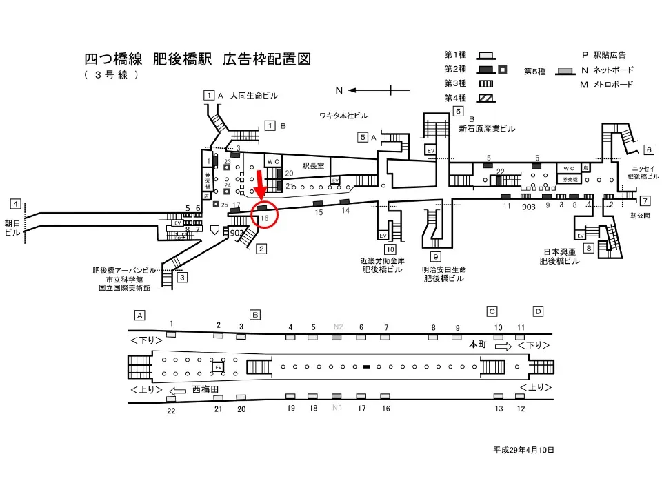 【看板】OsakaMetro 肥後橋駅 ホーム No.1-16