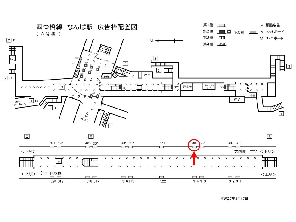 【看板】OsakaMetro なんば駅 ホーム No.1-307