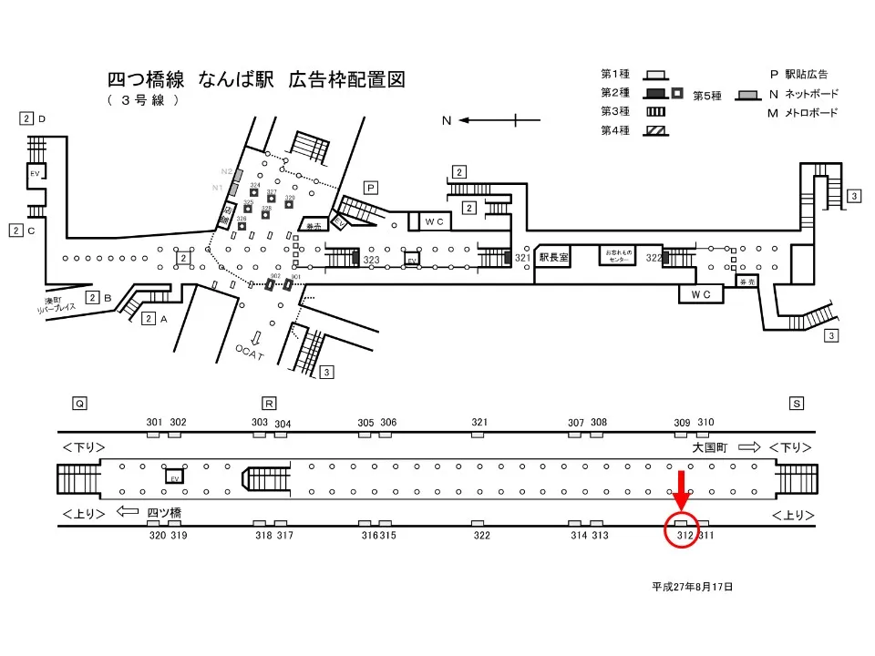 【看板】OsakaMetro なんば駅 ホーム No.1-315