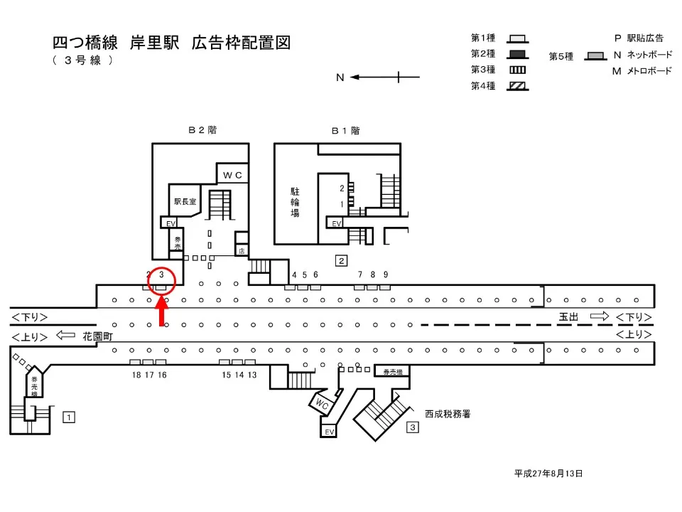 【看板】OsakaMetro 岸里駅 ホーム No.1-3