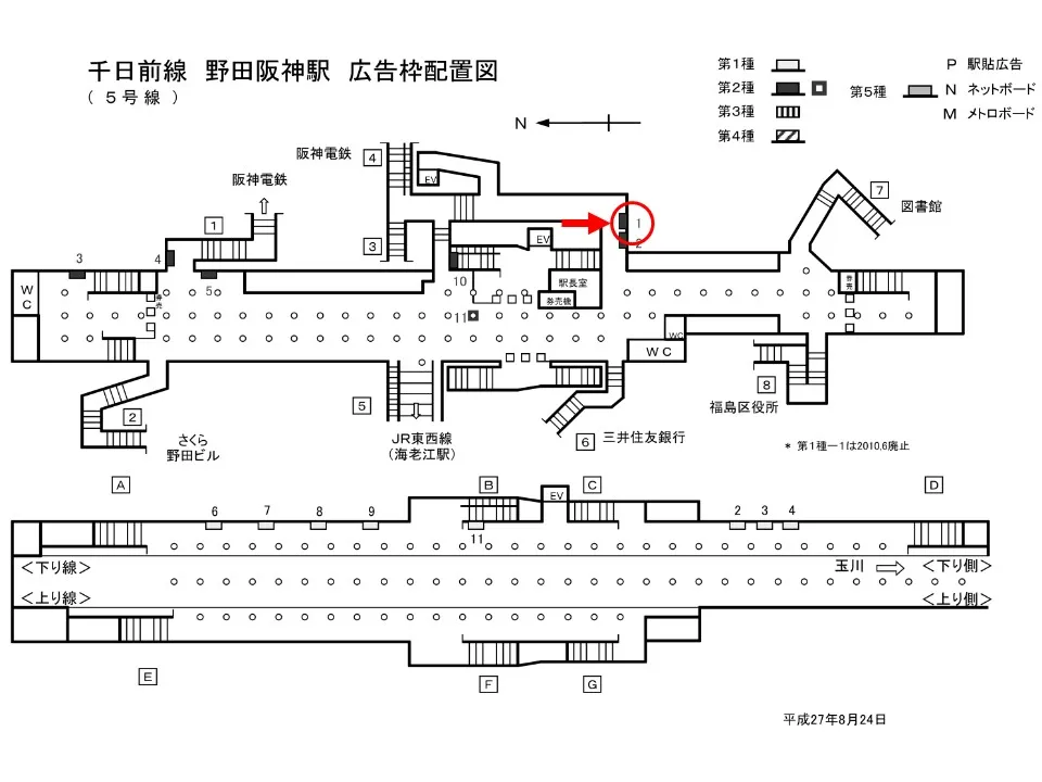 【看板】OsakaMetro 野田阪神駅 コンコース No.2-1