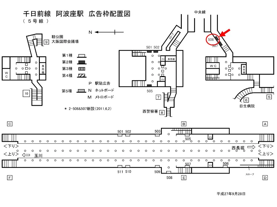 【看板】OsakaMetro 阿波座駅 ホーム No.1-509