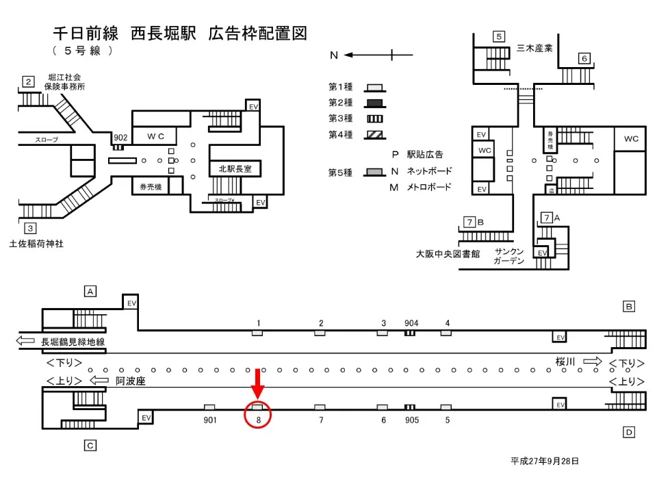 【看板】OsakaMetro 西長堀駅 ホーム No.1-8