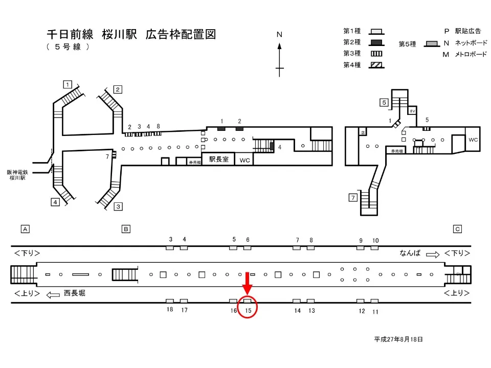 【看板】OsakaMetro 桜川駅 ホーム No.1-15