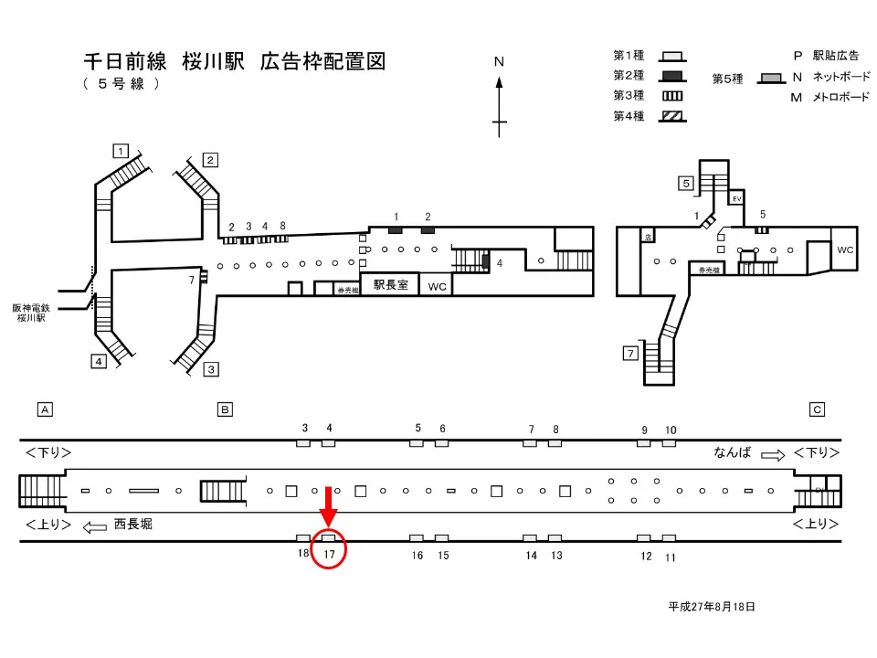 【看板】OsakaMetro 桜川駅 ホーム No.1-17