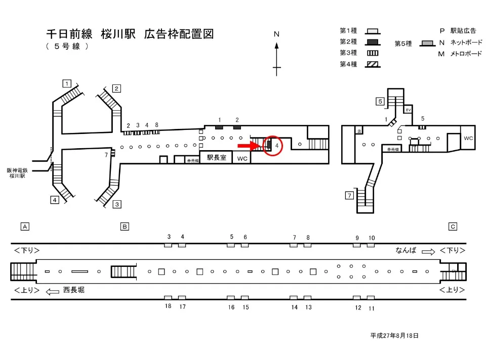 【看板】OsakaMetro 桜川駅 ホーム No.1-5