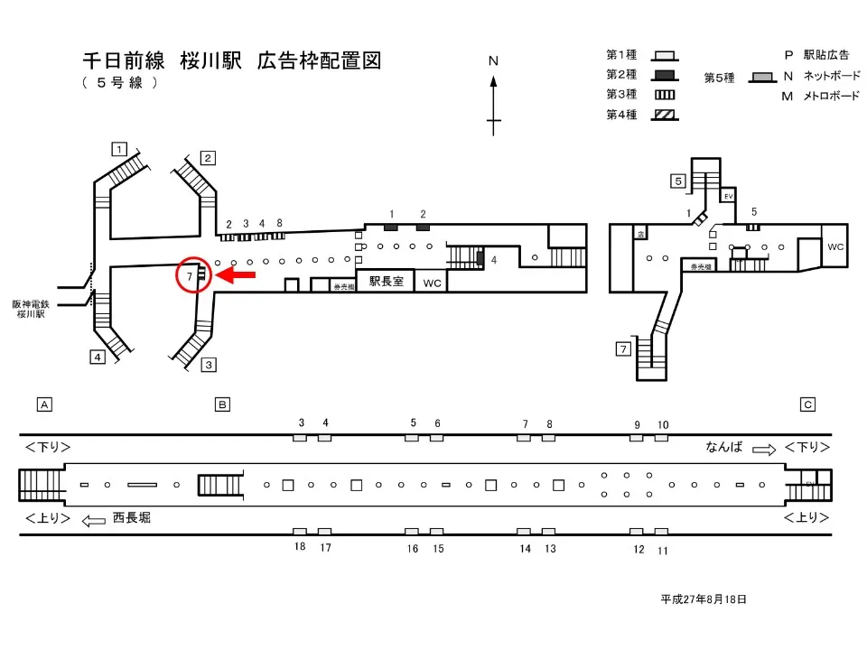 【看板】OsakaMetro 桜川駅 ホーム No.1-5