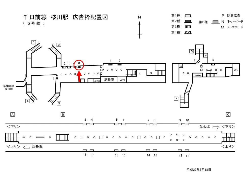 【看板】OsakaMetro 桜川駅 ホーム No.1-5