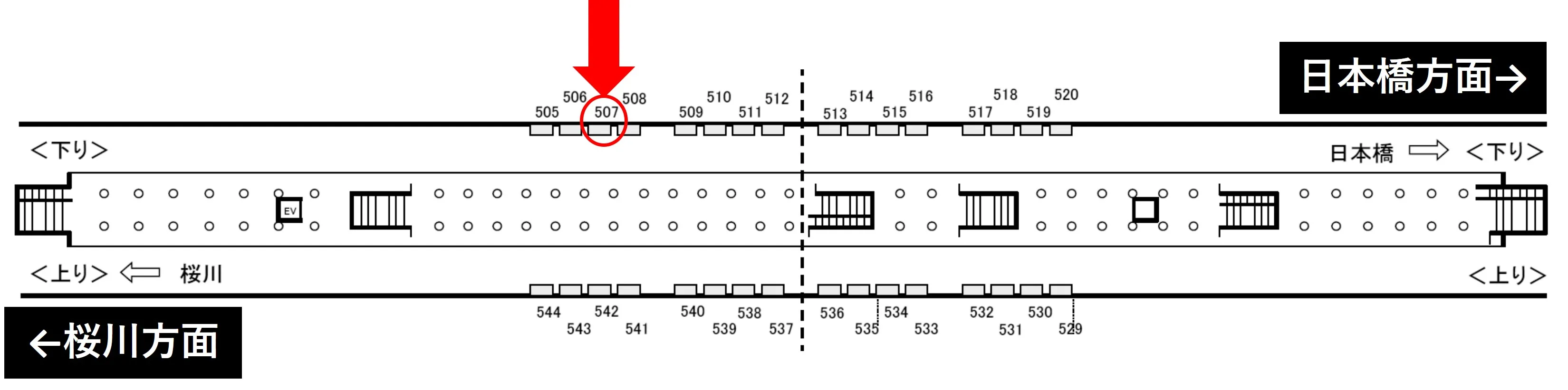 ホーム上に設置されているため、日本橋方面の利用者に向けたPRが有効です。